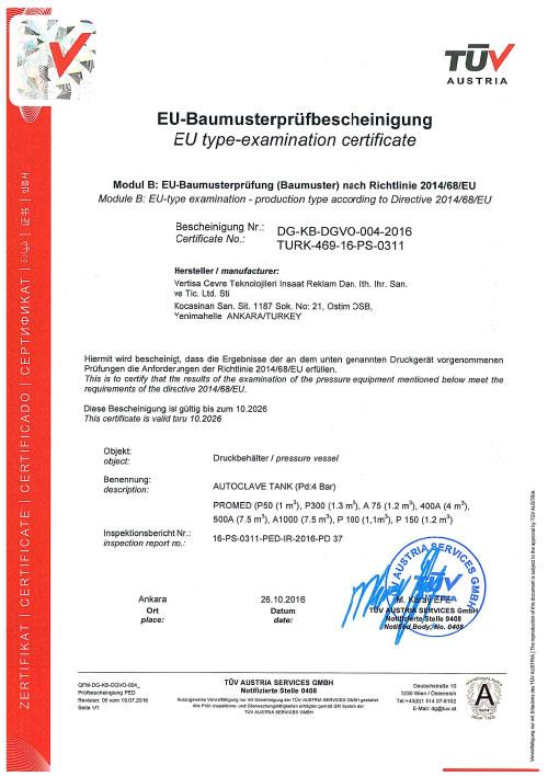 The rigorous quality control mechanisms we apply throughout our manufacturing processes ensure reliability and performance at every stage—from raw material selection to the shipment of the final product. Additionally, we provide our customers with internationally recognized assurance through the CE Declaration of Conformity (certified by DEKRA), confirming our products’ compliance with European Union standards. Notably, the EU-Baumusterprüfbescheinigung (EU Type Examination Certificate issued by TÜV Austria) that we have obtained for our autoclaves serves as concrete evidence of our expertise in this field and our dedication to product safety.