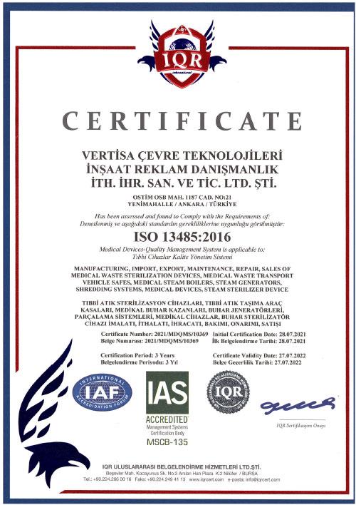 Our quality management system is structured to fully comply with internationally recognized standards. Accordingly, we hold certifications for ISO 9001:2015 Quality Management System, ISO 13485:2016 Medical Devices Quality Management System, ISO 45001:2018 Occupational Health and Safety Management System, and ISO 14001:2015 Environmental Management System. These certifications reflect our integrated management approach, demonstrating our commitment to sustainability, employee health, and environmental responsibility across all our activities.