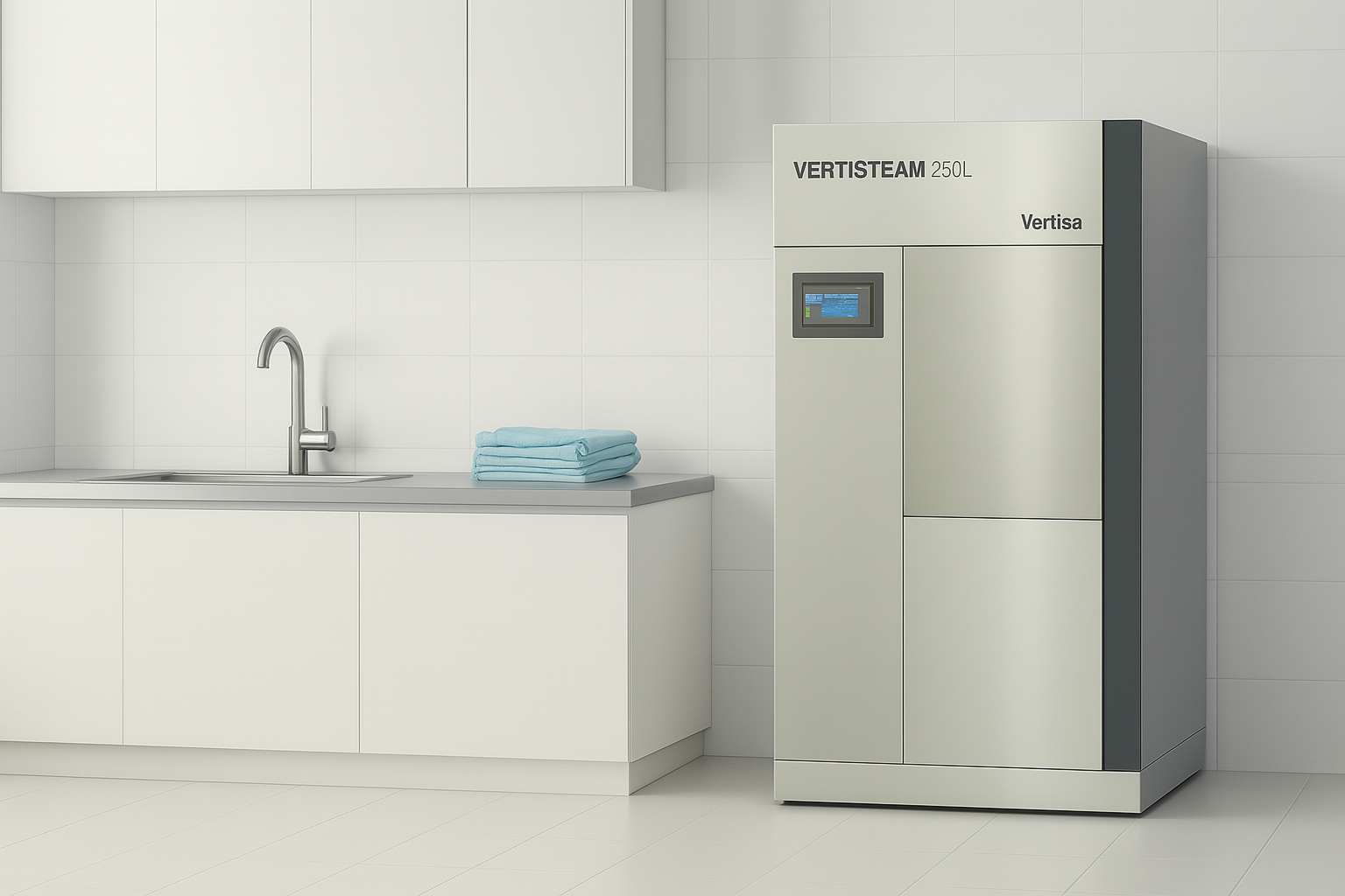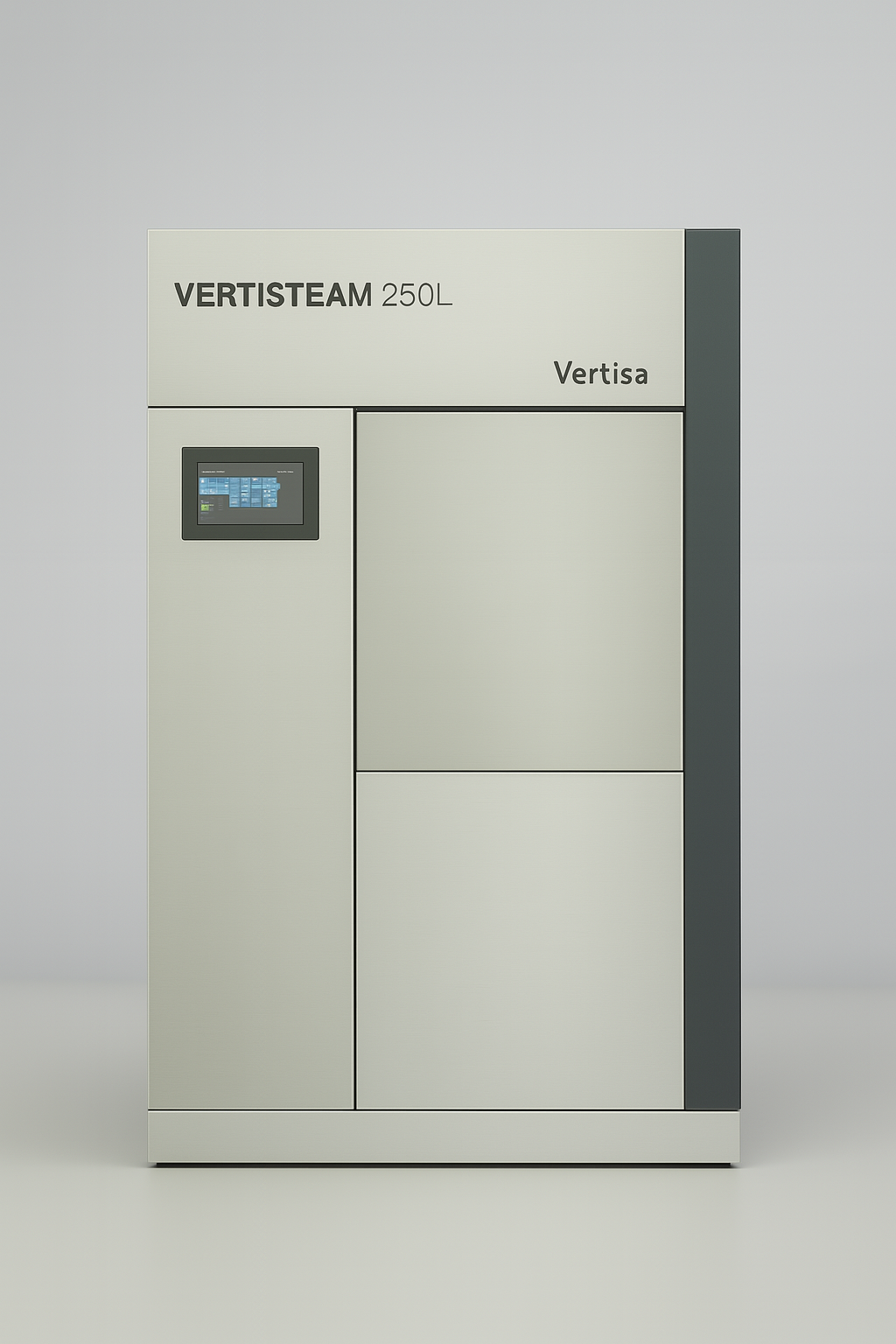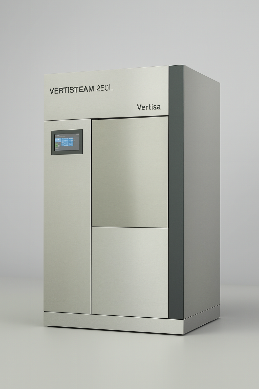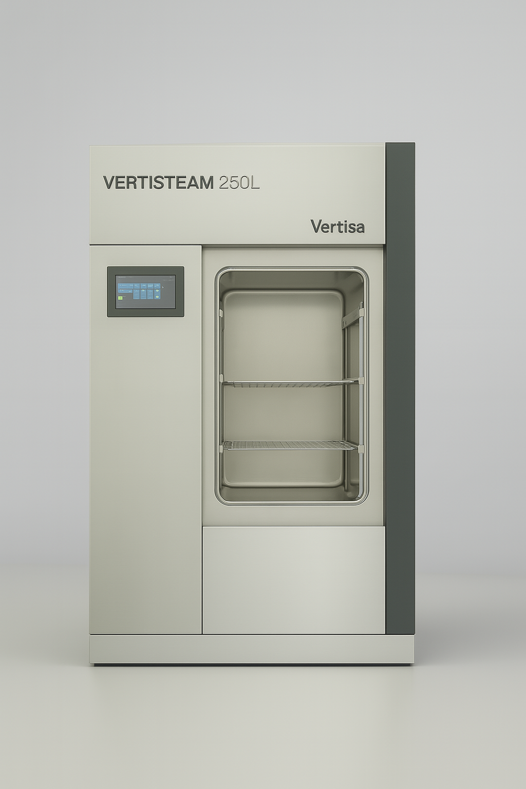 The Vertisa VertiSteam 250L Steam Sterilizer is an ideal solution that combines a compact design with high performance, making it perfectly suited for small and medium-sized clinics, dental practices, and specific hospital departments such as ophthalmology and ENT. With a capacity of 3 STU, it offers sufficient space for the safe sterilization of daily surgical instrument sets, packaged textiles, and glassware. Its robust chamber, manufactured from AISI 316L grade stainless steel, ensures long-lasting durability and exceptional resistance to corrosion. The advanced PLC control system and user-friendly 7-inch touchscreen make it easy to precisely manage and record all sterilization cycles. Full compliance with EN285 as well as all essential Medical Device and Pressure Equipment Directives makes the VertiSteam 250L a reliable and standards-compliant investment for your facility.