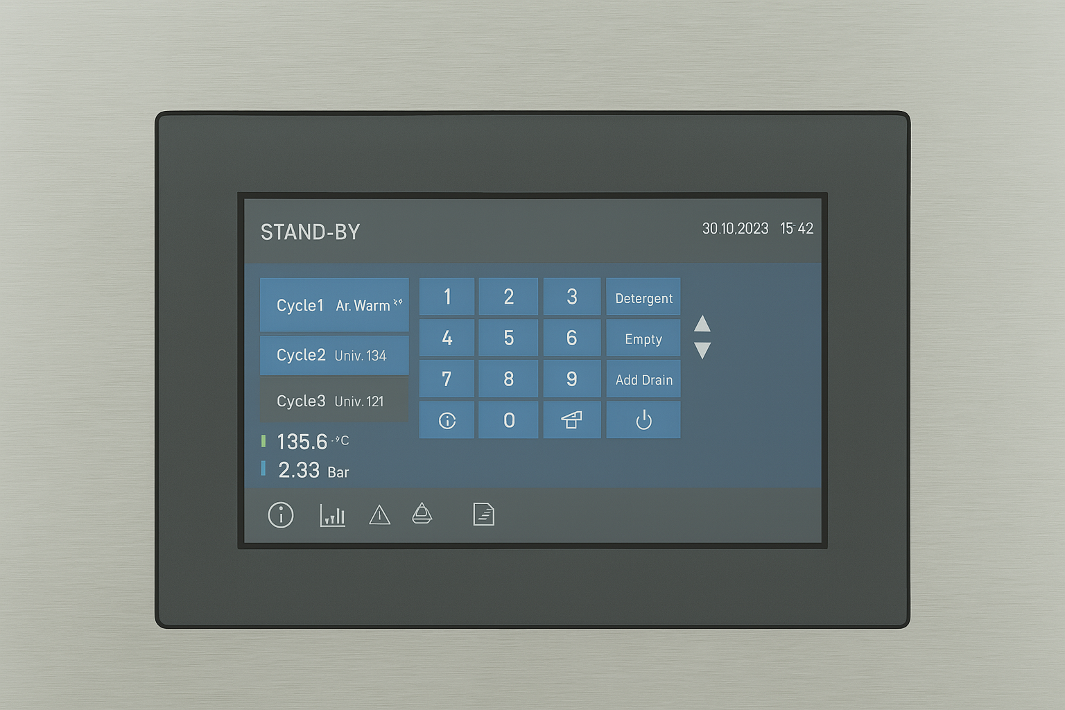 Standard Programs: 3 standard cycles (Textile, Surgical Instruments, Rubber)